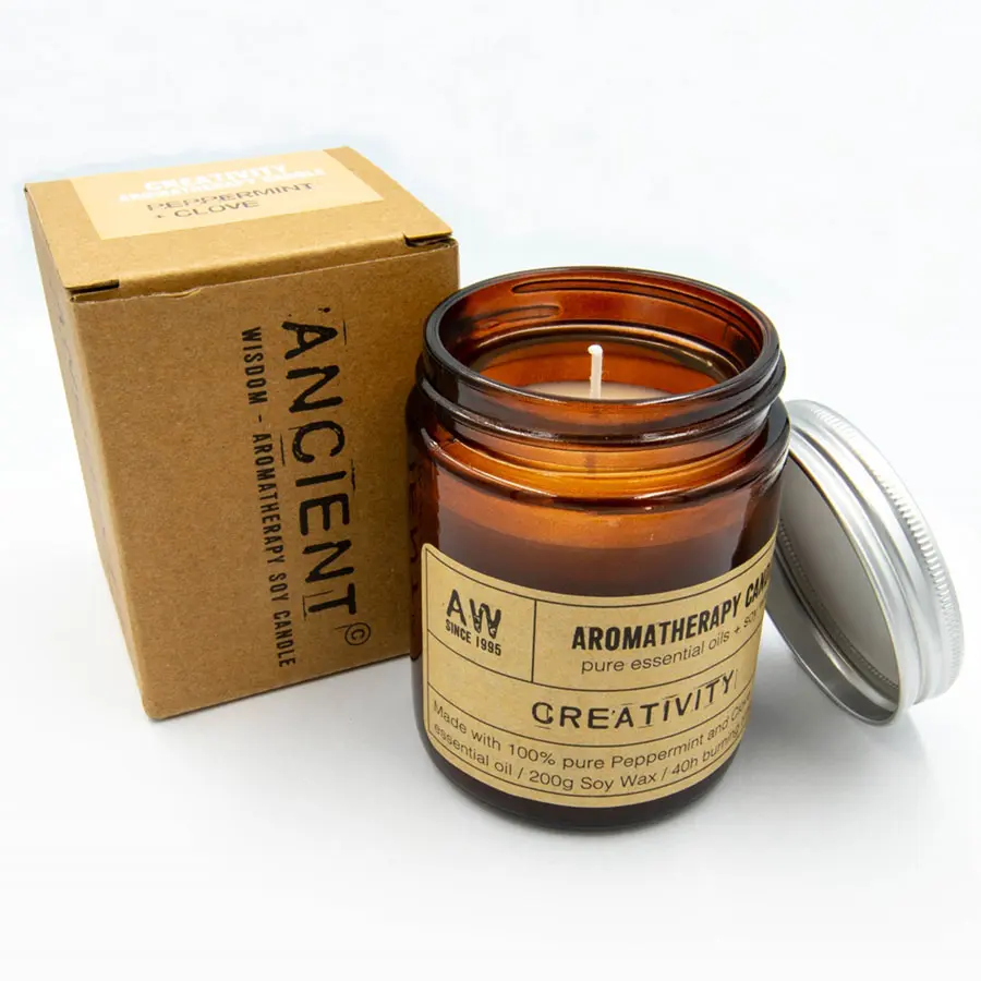 Aromaterapeutyczna świeczka sojowa - Kreatywność / Mięta pieprzowa, Goździk. Świeca sojowa z olejkami eterycznymi