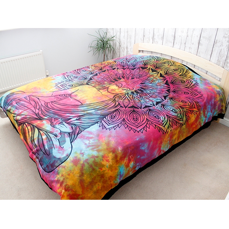 Bawełniana narzuta - Cycle of Ages. Wymiary 230 x 200 cm. Bawełniane narzuty wykonane w Indiach będą z pewnością wspaniałym dodatkiem w Twoim domu. Bawełniana narzuta, ozdoba ścienna Narzuty mogą być również użyte jako ozdoby ścienne, 3 pinezki są w stanie utrzymać materiał. Bawełna jest uniwersalnym i popularnym materiałem ze względu na swoją miękkość, trwałość i oddychalność.