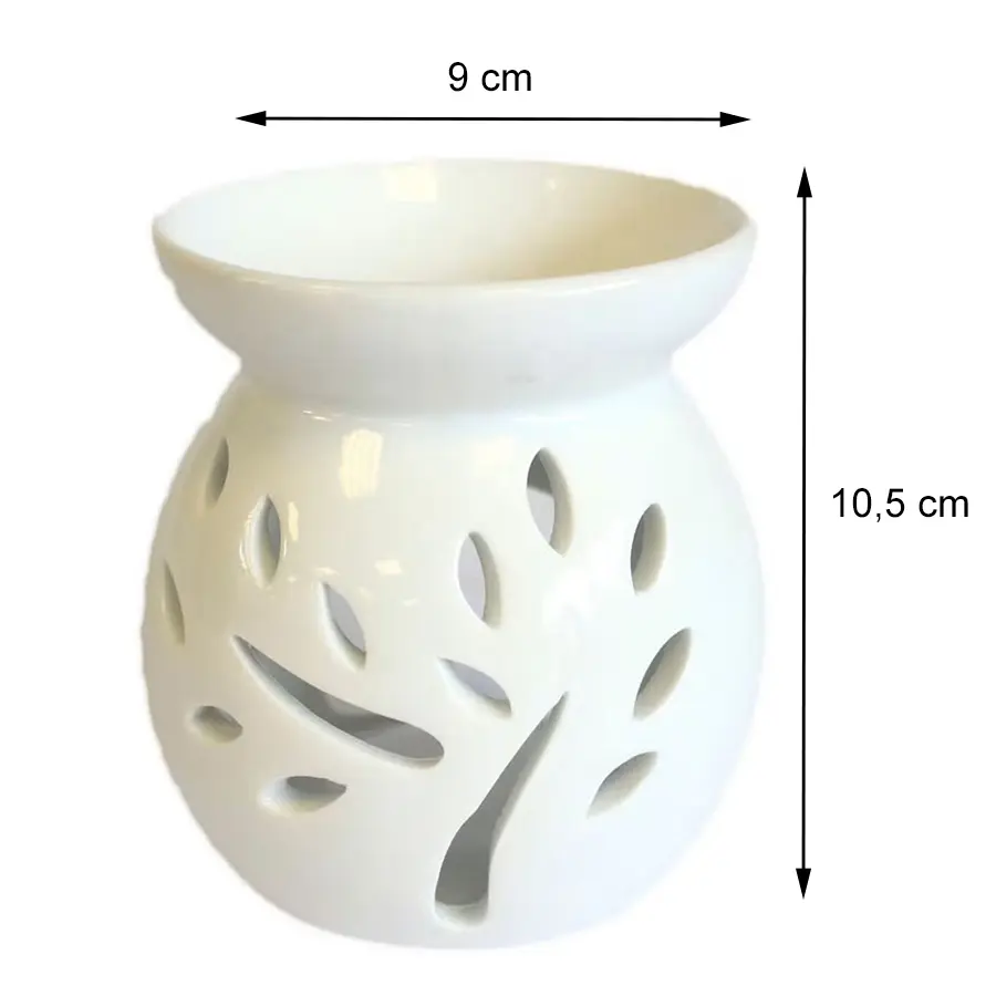 Biały kominek zapachowy - Drzewo. Wysokość 10,5 cm. Elegancki, ceramiczny kominek do aromaterapii