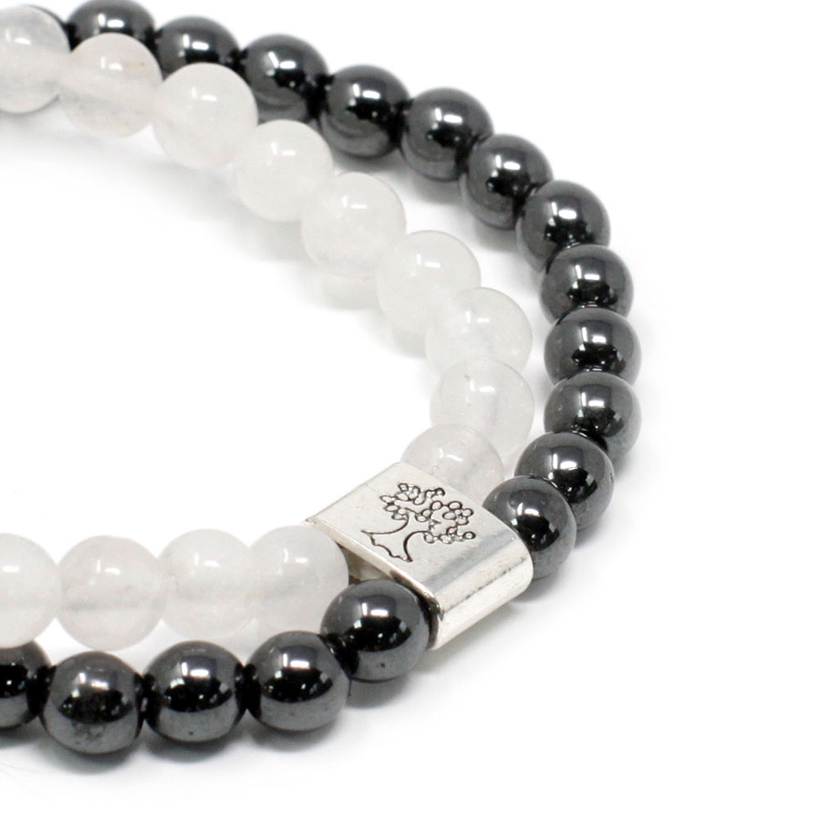 Zestaw dwóch elastycznych ozdób połączonych nowoczesną srebrną spinką oferuje krystaliczne zestawienie naturalnego kwarcu skalnego oraz koralików magnetycznych. Wybrana bransoletka magnetyczna z kamieniami wykorzystuje stałe pole magnetyczne do wspierania procesów regeneracyjnych organizmu oraz codziennej harmonii energetycznej. Przezroczysta, czysta struktura kwarcu nadaje biżuterii ponadczasowej elegancji i lekkości, która doskonale komponuje się z każdą stylizacją. Dzięki zastosowaniu wytrzymałej gumki produkt idealnie dopasowuje się do nadgarstka, gwarantując pełną wygodę noszenia bez konieczności regulacji zapięcia.