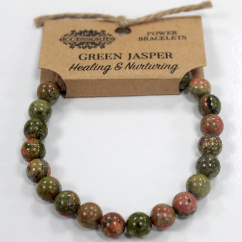 Bransoletka mocy - Uzdrawianie - Jaspis Zielony. Wymiary 7 x 0,8 cm. Wysokiej jakości elastyczna bransoletka z jaspisem zielonym, posiada koraliki o