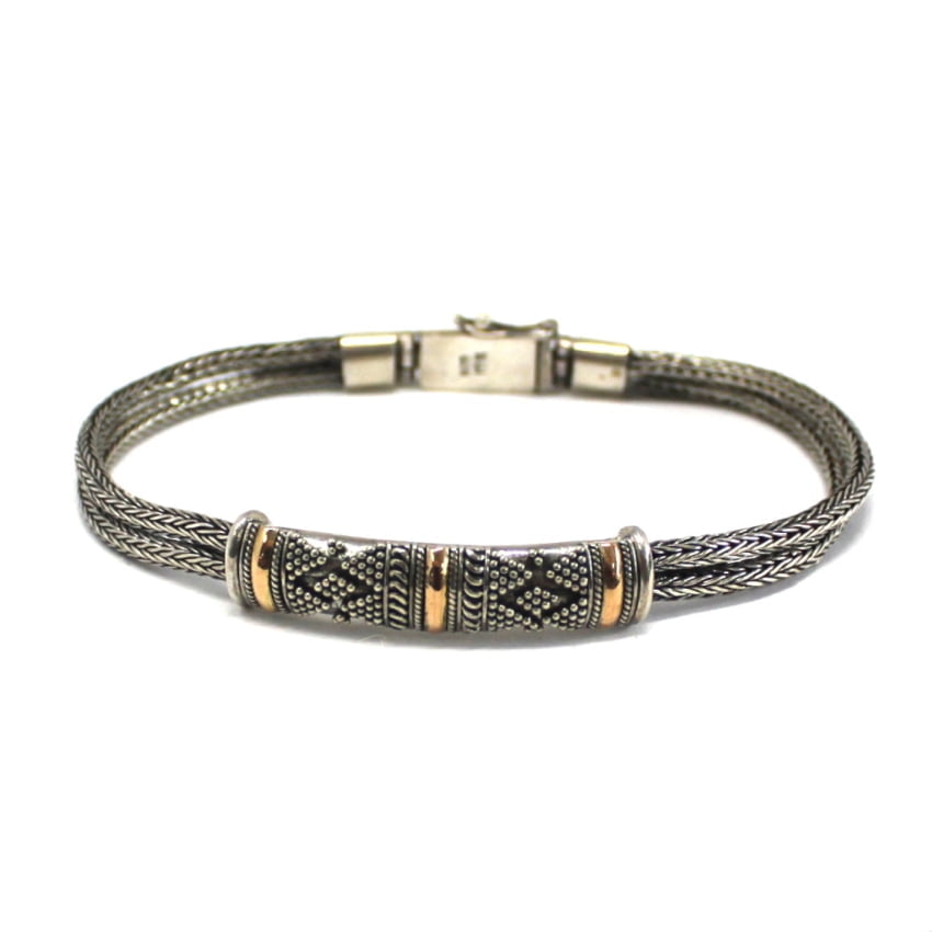 Bransoletka srebrno złota - Unisex Single. Wymiar 21 x 0,7 cm. Srebro próba 925. 18 karatowe złoto. Wyjątkowo piękna i dodająca elegancji biżuteria wykonana ręcznie przez wykwalifikowanych rzemieślników z