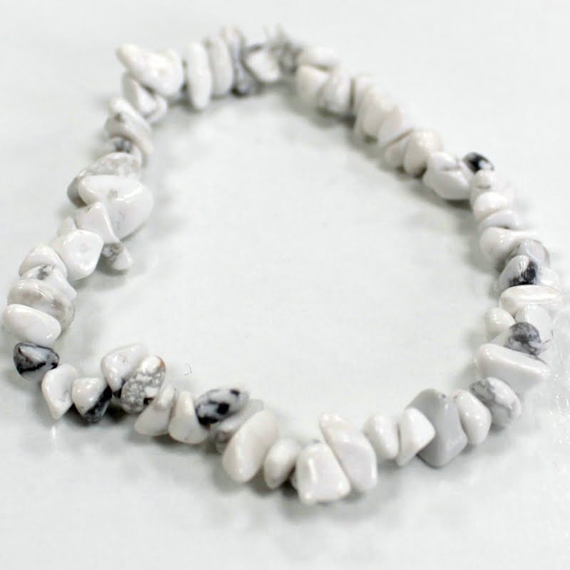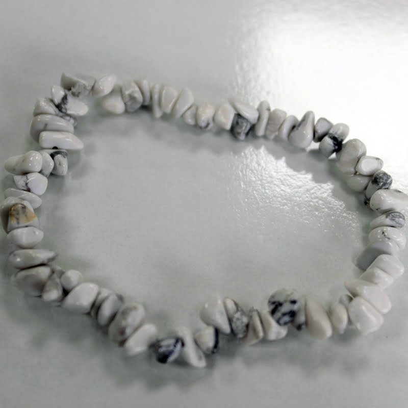 Bransoletka z kamieni - Jaspis Biały. Wymiary 8 x 2 x 1 cm. Klasyczna, elastyczna bransoletka na mocnej gumce z kawałkami kamieni szlachetnych. Bardzo wygodne w noszeniu, dzięki dobrze wypolerowanym kamieniom, z pewnością nie będą szkodzić skórze.