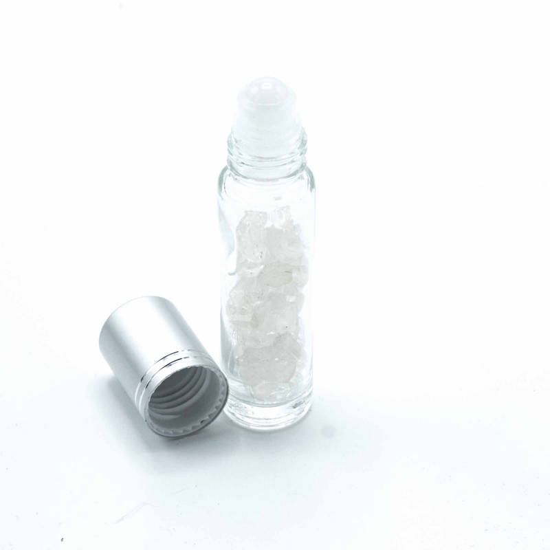 typu roll on o pojemności 5 ml zawierająca kamienie szlachetne - Kwarc. Każda zwieńczona jest gładko