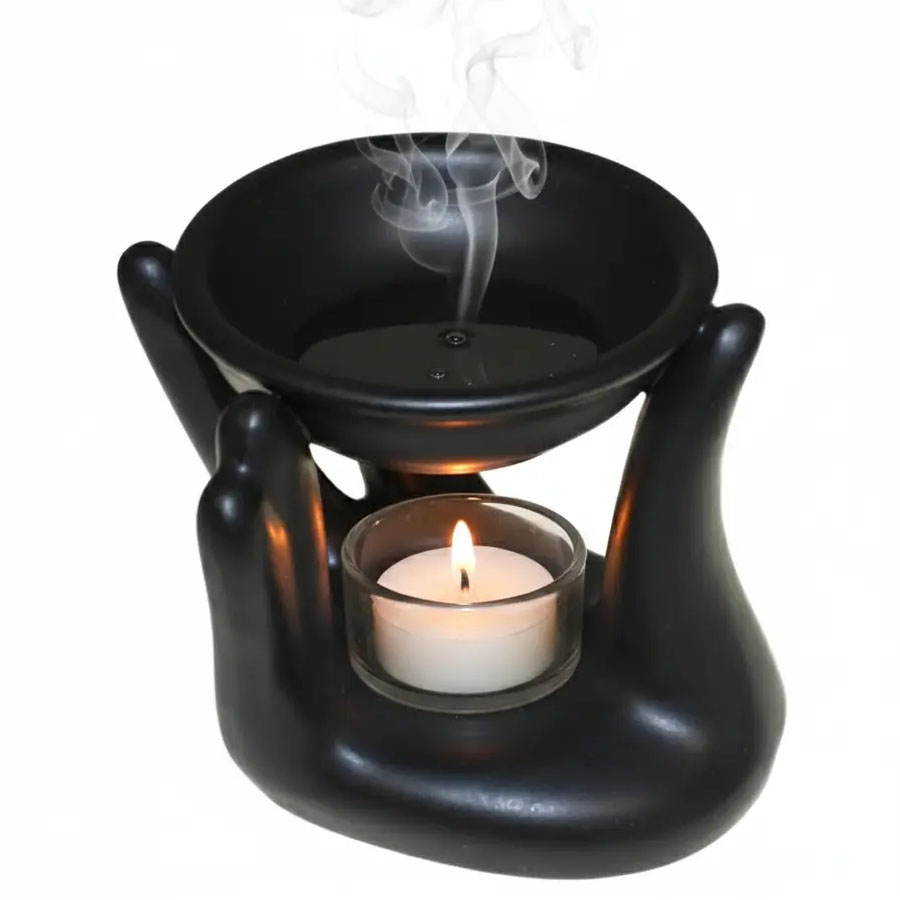 Oryginalny, designerski kominek zapachowy wykonany z wysokiej jakości czarnej ceramiki. Zachwyca niezwykłą formą nawiązującą do kształtu dłoni. Jego unikalna konstrukcja sprawia, że miseczka na aromaty jest stylowo podtrzymywana przez ceramiczne palce, tworząc dekorację wyróżniającą się w każdym wnętrzu.