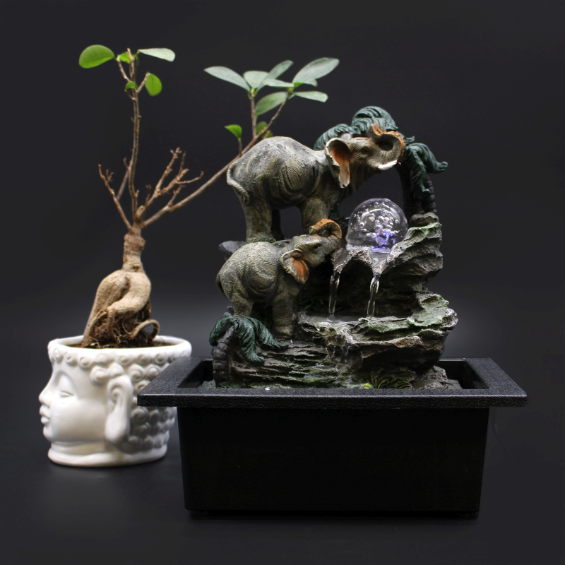 Domowa fontanna wodna w kształcie kaskady to elegancki i dekoracyjny dodatek do domu. Spływająca woda generuje przyjemny szum i dodaje uroku miejscu, w którym fontanna się znajduje. Jednym z elementów produktu jest kula wyposażona w światła LED która obraca się podczas pracy urządzenia, co podkreśla urok produktu nocą.