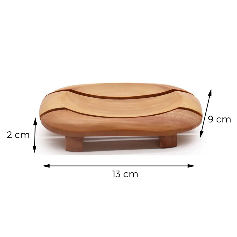Drewniana mydelniczka - Klasyczna. Wymiary 13 x 9 x 2 cm. Drewniana mydelniczka z pigwicy właściwej zachwyca klasycznym, prostokątnym kształtem i naturalnym urokiem drewna. Posiada subtelnie wyprofilowane dno z otworami odpływowymi, które skutecznie odprowadzają wodę, chroniąc mydło przed rozmiękczeniem. Jej ciepły, miodowy odcień i pięknie zarysowane słoje wprowadzają do łazienki elegancję i przytulny klimat. To funkcjonalny i ponadczasowy dodatek, idealny zarówno do nowoczesnych, jak i tradycyjnych wnętrz.
