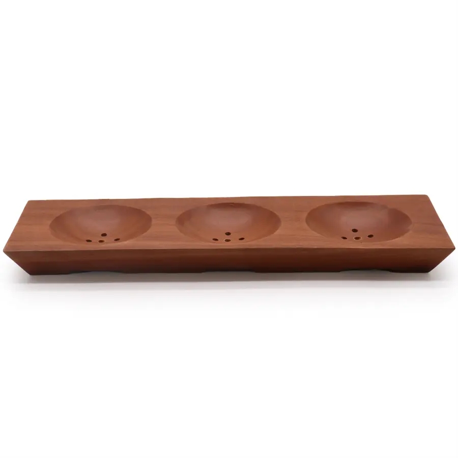 Szukasz sposobu na eleganckie uporządkowanie kilku rodzajów kosmetyków w kostce? Prezentowana drewniana mydelniczka o imponującej długości 27 cm to idealne rozwiązanie dla osób korzystających jednocześnie z mydła, szamponu oraz odżywki w formie stałej. Wykonanie z egzotycznej pigwicy właściwej nadaje konstrukcji wyjątkową szlachetność i trwałość, a karmelowy odcień surowca wprowadza do wnętrza atmosferę luksusowego spa. Trzy niezależne, starannie wyprofilowane wgłębienia pozwalają na higieniczną segregację produktów, dbając o ich estetyczną prezentację. Dodatkowo drewniana mydelniczka została wyposażona w system otworów odpływowych, które gwarantują stałą cyrkulację powietrza pod każdą kostką.