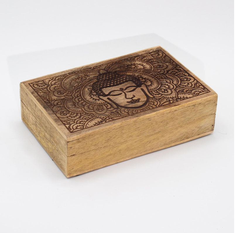 Drewniane pudełko grawerowane - Twarz Buddy