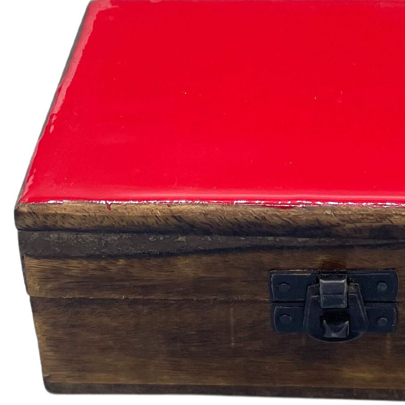 Drewniane pudełko z ceramiczną powłoką - Czerwone. Wymiary 15 x 10 x 6 cm. Piękno i funkcjonalność spotykają się w tym niezwykle oryginalnym pudełku. Pełni ono praktyczną rolę w przechowywaniu, ale także stanowi
