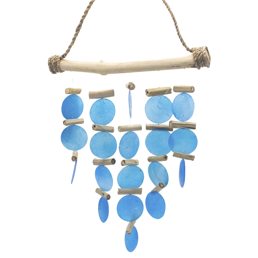 Wymiary 31 x 20 cm. Wprowadź naturę do swoich wnętrz, za pomocą tych absolutnie pięknych drewnianych dzwonków. Ręcznie wykonane przez małe rodzinne firmy na Bali, przy użyciu materiałów pochodzenia plażowego, takich jak drewno wyrzucone na brzeg i szkło Capiz. Capiz to dobrze znana skorupa muszli ostrygi szklistej, która wydaje przyjemny dźwięk na wietrze. Dodatkowo przepięknie połyskuje, dodaje blasku w słoneczne dni.