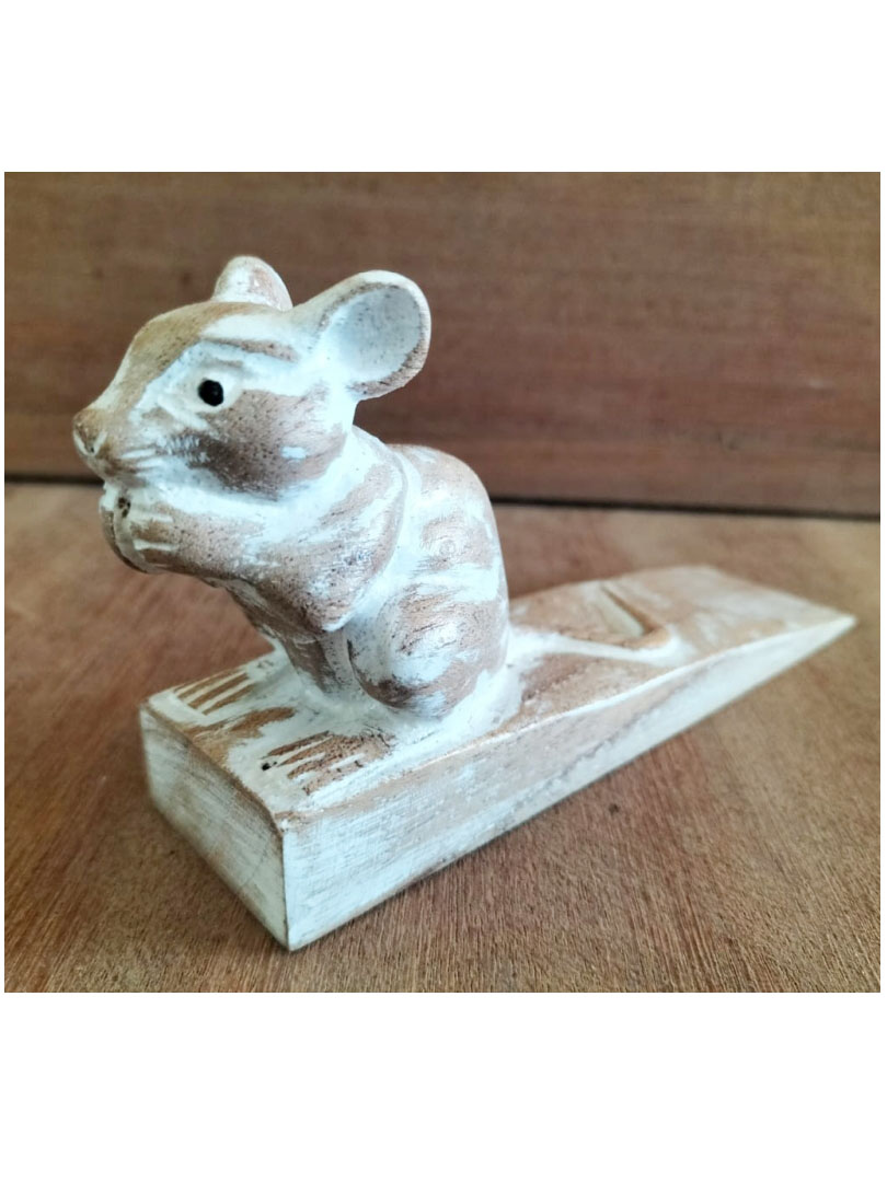 Ręcznie wykonany z litego kawałka drewna i rzeźbiony we wzór myszki. Wspaniałe rzeźbienie nadaje stoperowi wyjątkowy i artystyczny akcent, czyniąc go atrakcyjnym wizualnie dodatkiem do domu lub biura. Dodatkowo efekt postarzania zwiększa atrakcyjność przedmiotu.