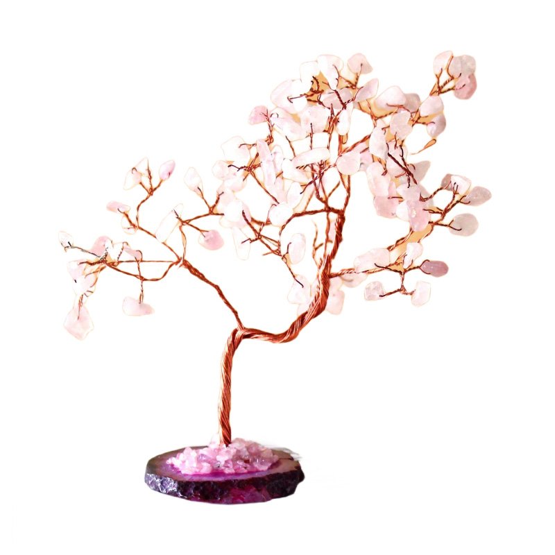 Drzewko z kamieni - Różowy Kwarc Na Podstawie z Agatu - 100 Kamieni