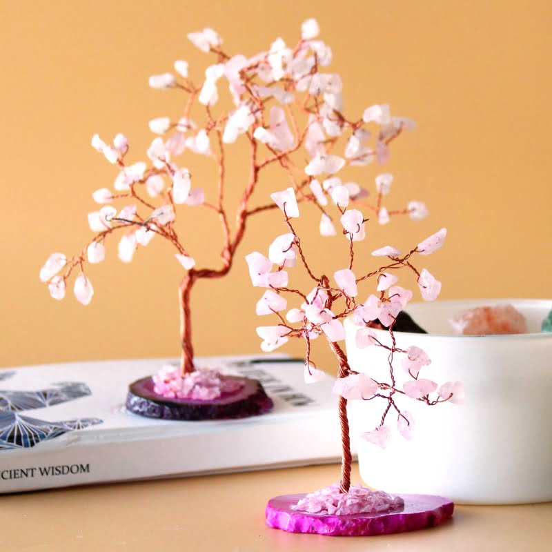 Drzewko z kamieni - Różowy Kwarc Na Podstawie z Agatu