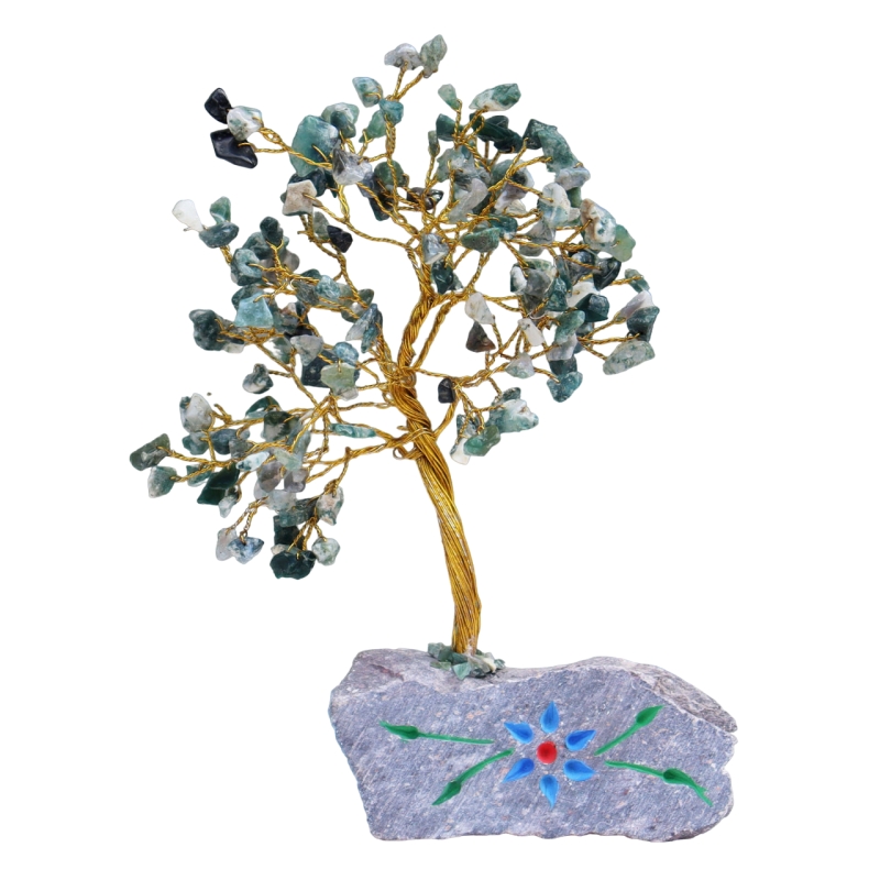 Drzewko z kamieniami szlachetnymi - Agat Mszysty | 160 kamieni. Wymiary 8 x 4 x 20,5 cm. Dodaj odrobinę magii do swojego życia, otaczając się
