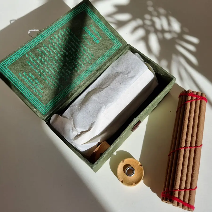 Kadzidełko Himalajskie - Jałowiec. Wymiary opakowania 12 x 6,5 x 3,5 cm. Zestaw obejmuje