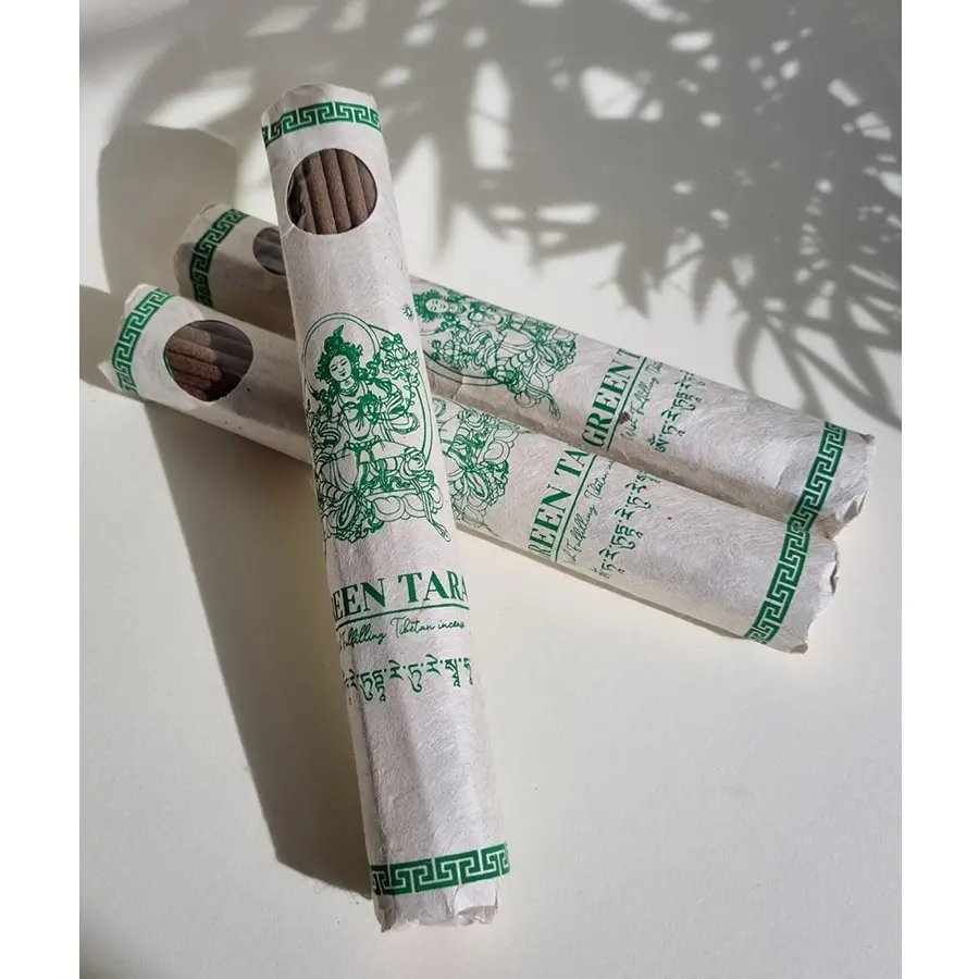 Kadzidło tybetańskie - Zielona Tara. Wymiary opakowania 20 x 3 cm. Opakowanie zawiera