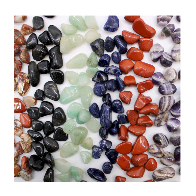 niepowtarzalność kolorystyczna. Na etapie produkcji następuje polerowanie powierzchni, dzięki czemu nadają się do celów dekoracyjnych lub metafizycznych. Powstają poprzez umieszczenie szorstkich kamieni w maszynie zwanej bębnem, która wykorzystuje szereg materiałów ściernych do polerowania i wygładzania kamieni, aż staną się