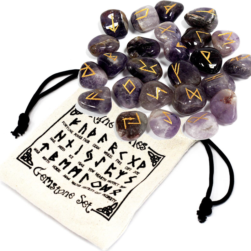 Kamień runiczny, alfabet runiczny - Ametyst. Zestaw 25 kamieni. Kamień runiczny z ametystu to wyjątkowy przedmiot łączący
