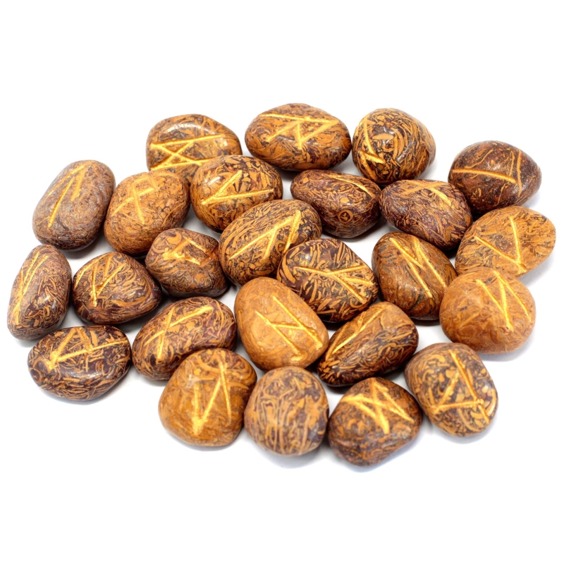 Kamień runiczny, alfabet runiczny - Jaspis Wężowy. Zestaw 25 kamieni. Kamień runiczny z jaspisu wężowego to wyjątkowy zestaw