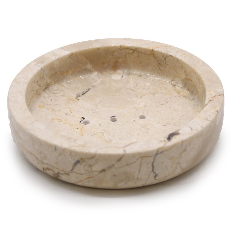 Kamienna mydelniczka - Miodowy Marmur. Wymiary 12 x 2,5 cm. Mydelniczka z marmuru to doskonały dodatek do każdej łazienki, który łączy w sobie naturalny urok i