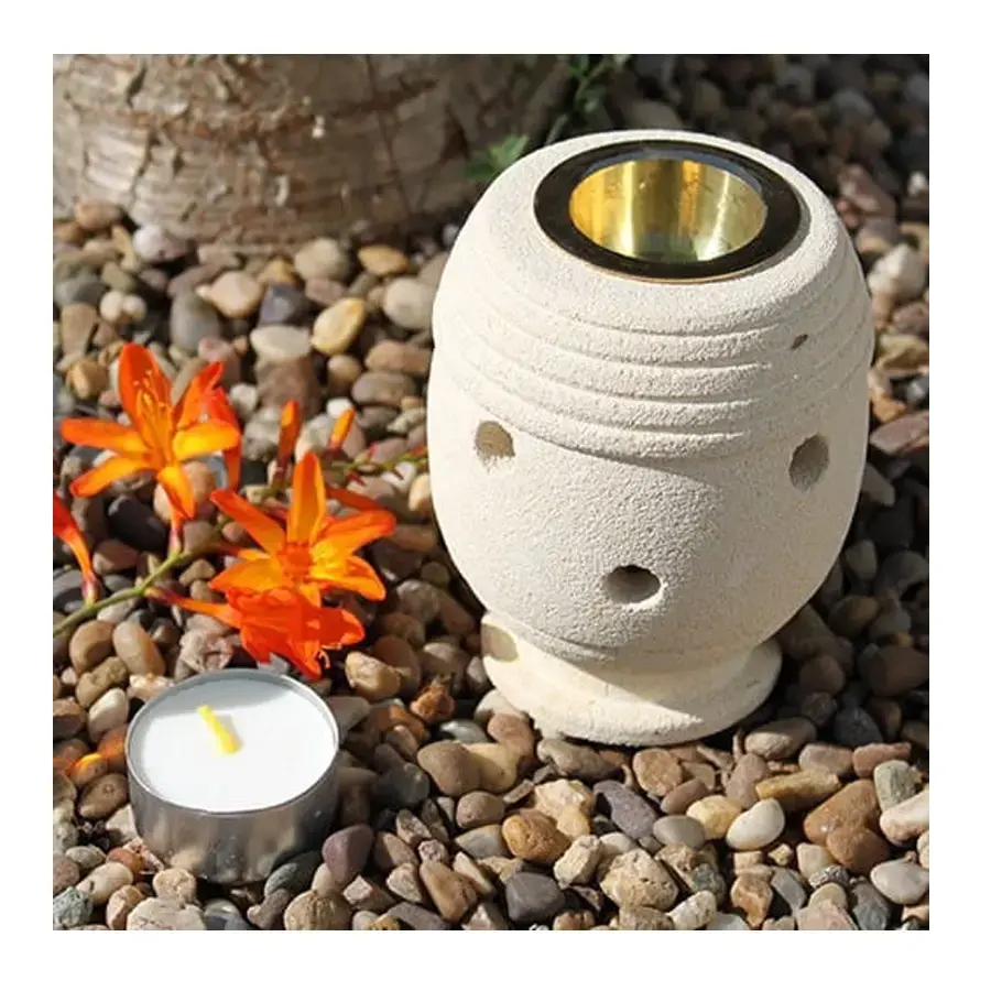 Ręcznie wykonany produkt z naturalnego piaskowca. Powstał dzięki doświadczeniu lokalnych twórców z indonezyjskiej Jawy. Oryginalna bryła kominka, o geometrycznym, abstrakcyjnym wzorze, stanowi wyjątkową dekorację każdego pomieszczenia, podkreślając niepowtarzalność wnętrza. Wyjmowana mosiężna miseczka pozwala na stosowanie różnorodnych zapachów – od olejków aromatycznych, przez woski zapachowe, aż po pachnące granulki.