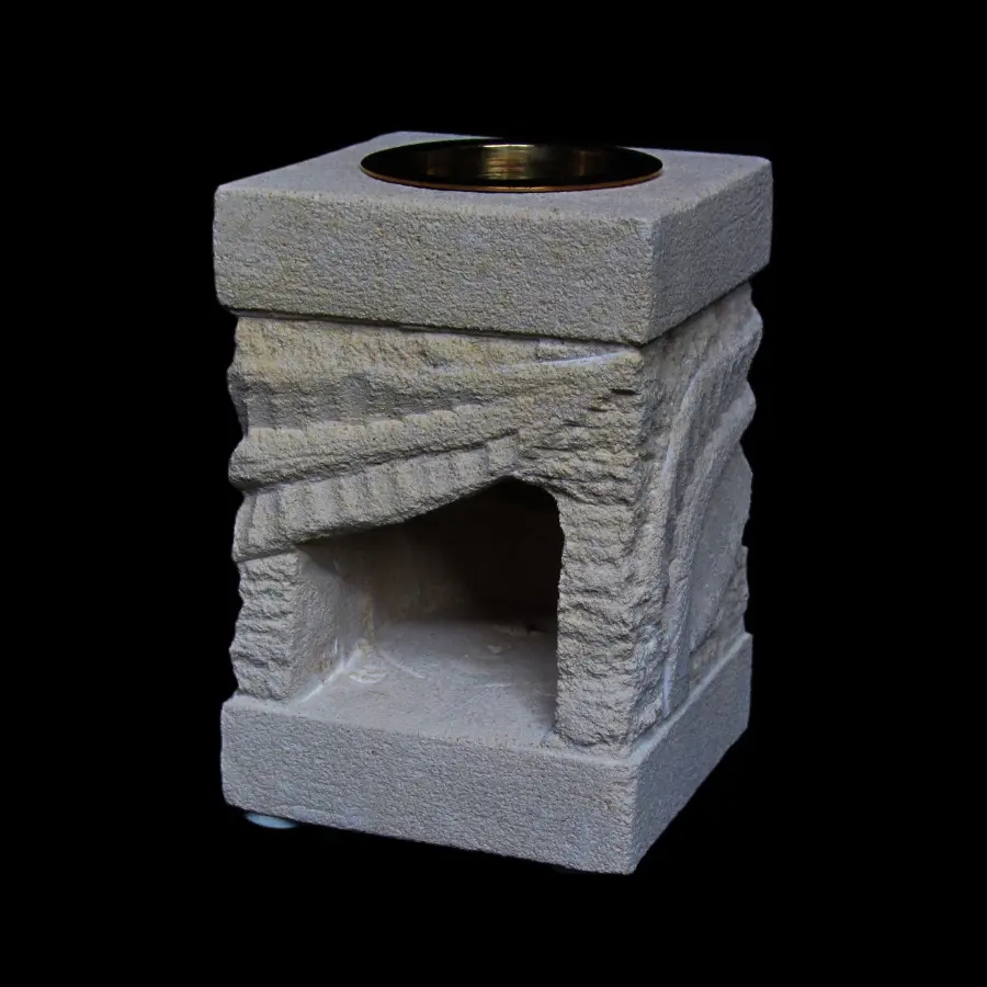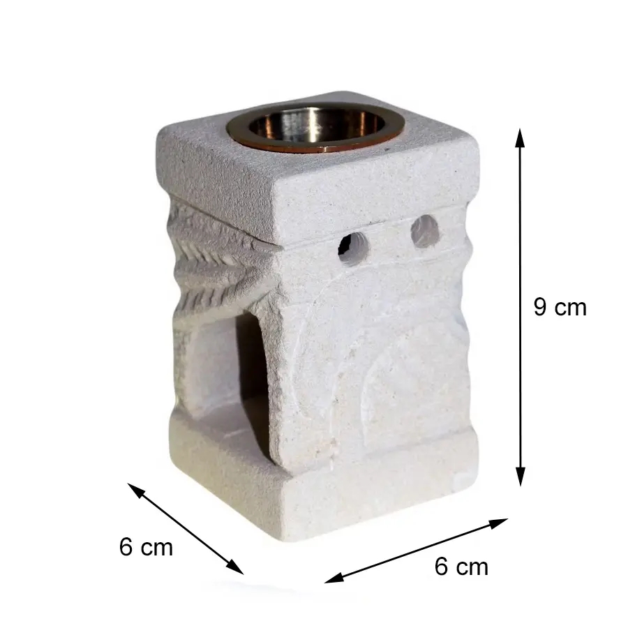 Ręcznie wykonany produkt z naturalnego piaskowca, stworzony przez rzemieślników z indonezyjskiej wyspy Jawa. Bryła w formie rzeźbionego prostopadłościanu z delikatnymi, orientalnymi zdobieniami i głębokimi żłobieniami na powierzchni piaskowca, stanowi wyjątkową dekorację. Wyjmowana mosiężna miseczka pozwala na stosowanie różnorodnych zapachów – od olejków aromatycznych, przez woski zapachowe, aż po pachnące granulki. Kominek doskonale sprawdza się zarówno w salonie, sypialni, jak i ogrodzie, nadając wnętrzom ciepła oraz wyjątkowego charakteru.