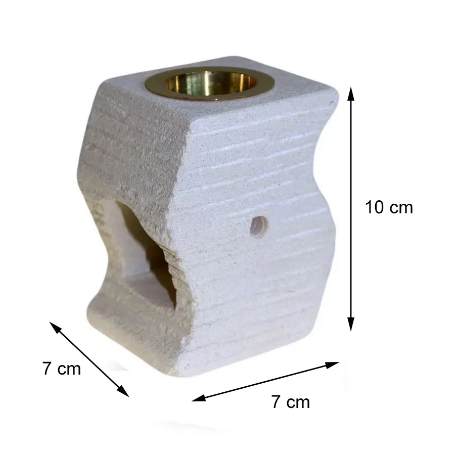 Powstał dzięki doświadczeniu lokalnych twórców z indonezyjskiej Jawy, którzy od pokoleń doskonalą sztukę pracy z naturalnym kamieniem. Bryła intryguje falistym wycięciem oraz nieregularną linią boczną, a powierzchnia piaskowca zdobiona jest żłobieniami podkreślającymi nowoczesny charakter całości. Wyjmowana mosiężna miseczka pozwala na stosowanie różnorodnych zapachów – od olejków aromatycznych, przez woski zapachowe, aż po pachnące granulki. Kominek doskonale sprawdza się zarówno w salonie, sypialni, jak i ogrodzie, nadając wnętrzom ciepła oraz wyjątkowego charakteru.