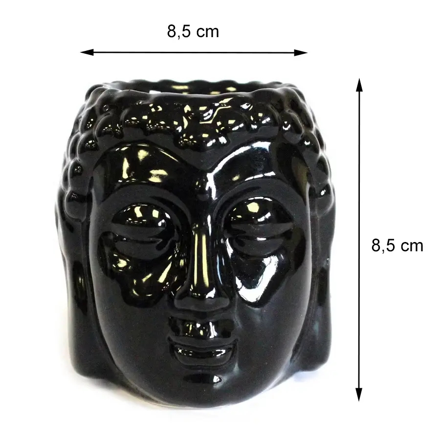 Ceramiczny kominek inspirowany postacią Buddy to oryginalny element dekoracyjny, który zachwyca lśniącą, czarną powierzchnią szkliwa. Jego górna część została zaprojektowana tak, by wygodnie umieścić olejki eteryczne lub wosk zapachowy. Stabilna konstrukcja oraz gładkie, zaokrąglone boki sprawiają, że użytkowanie kominka jest komfortowe i bezpieczne. Z tyłu znajduje się otwór na świeczkę typu tealight, który podkreśla praktyczny charakter kominka. Starannie wykonane detale nadają mu elegancki styl, doskonale komponujący się z różnorodnymi aranżacjami wnętrz.