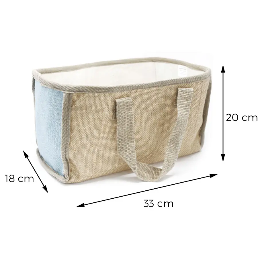 Koszyk na zakupy z juty - Turkusowy Duży. Wymiary 33 x 18 x 20 cm. Stylowy, kompaktowy koszyk na zakupy w naturalnym odcieniu to połączenie