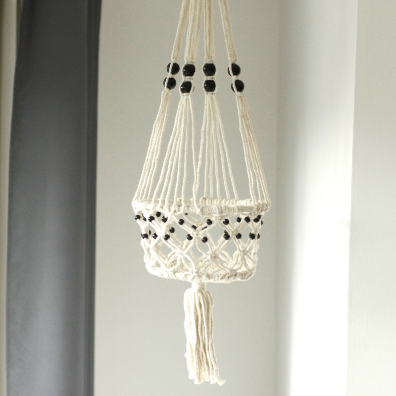 wyjątkowy dodatek do każdego wnętrza. Naturalny sznurek w kolorze ecru, ozdobiony czarnymi koralikami, nadaje przestrzeni przytulności i