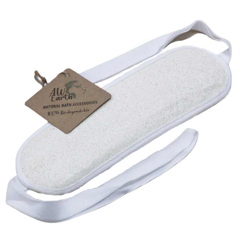 Naturalna myjka loofah - Do pleców. Wymiar 95 x 10 cm. Myjka z naturalnej luffy i bawełny to praktyczny wybór na co dzień.