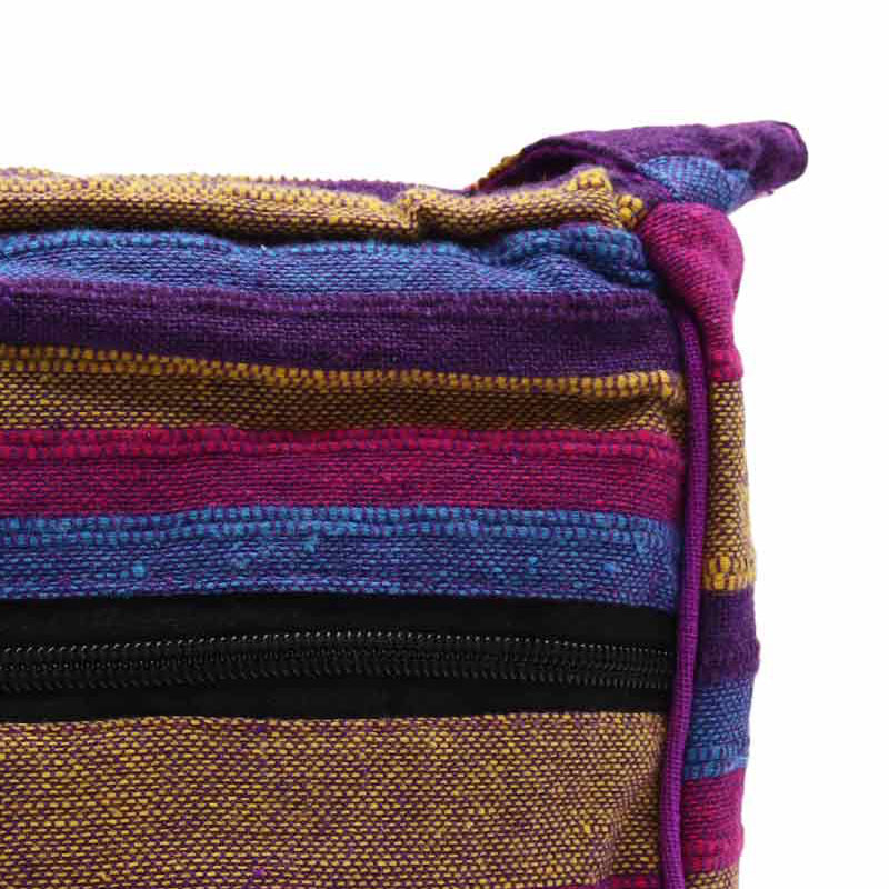 Nepalska torba na ramię - Kontrastowe barwy. Wymiary 25 x 26 x 7 cm. Torba na ramię inspirowana nepalskim rękodziełem przyciąga wzrok intensywnymi odcieniami fioletu, różu i złota, które tworzą harmonijny wzór poziomych pasów. Uszyta