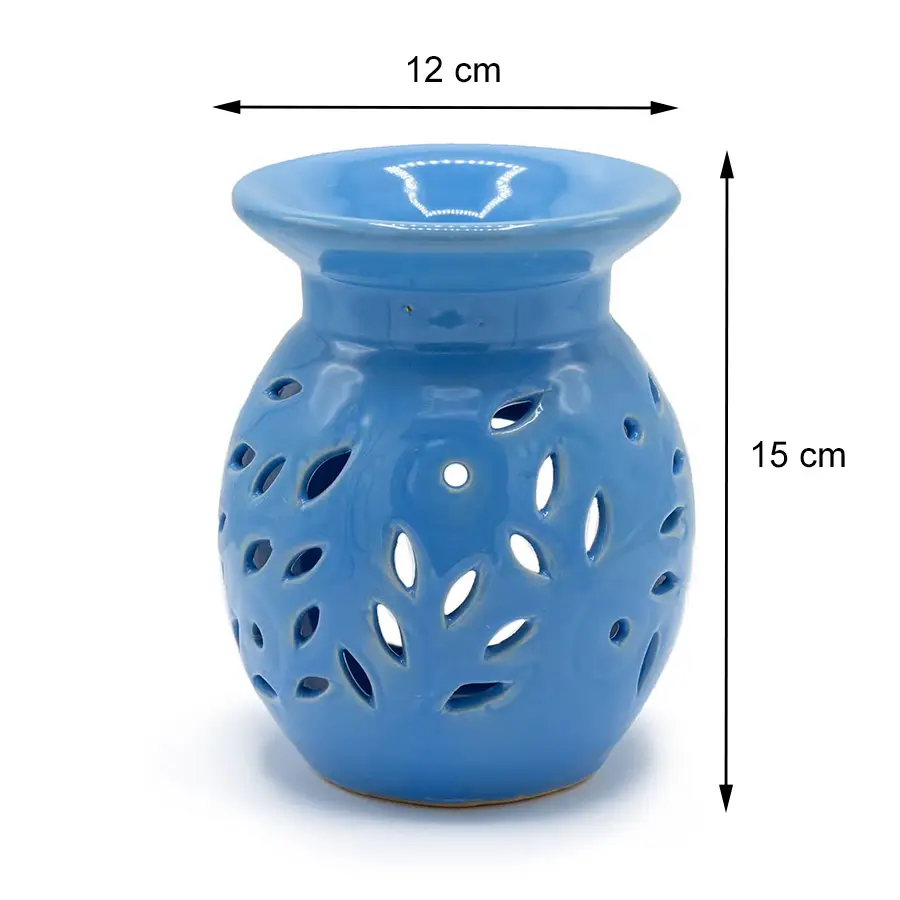 Niebieski kominek zapachowy. Wymiary: 15 x 12 cm. Elegancki, ceramiczny kominek do aromaterapii w