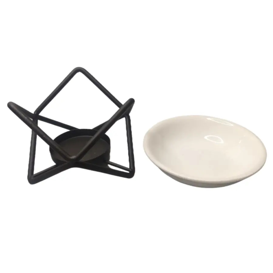 Nowoczesny kominek zapachowy o geometrycznej formie to wyrazisty element dekoracyjny, który łączy surowość metalu z subtelnością ceramiki. Dzięki minimalistycznej konstrukcji produkt ten doskonale odnajduje się w nowoczesnych aranżacjach, oferując szybki i skuteczny sposób na wypełnienie domu ulubionym aromatem. Graficzny układ podstawy sprawia, że kominek przyciąga wzrok nawet wtedy, gdy nie jest używany.