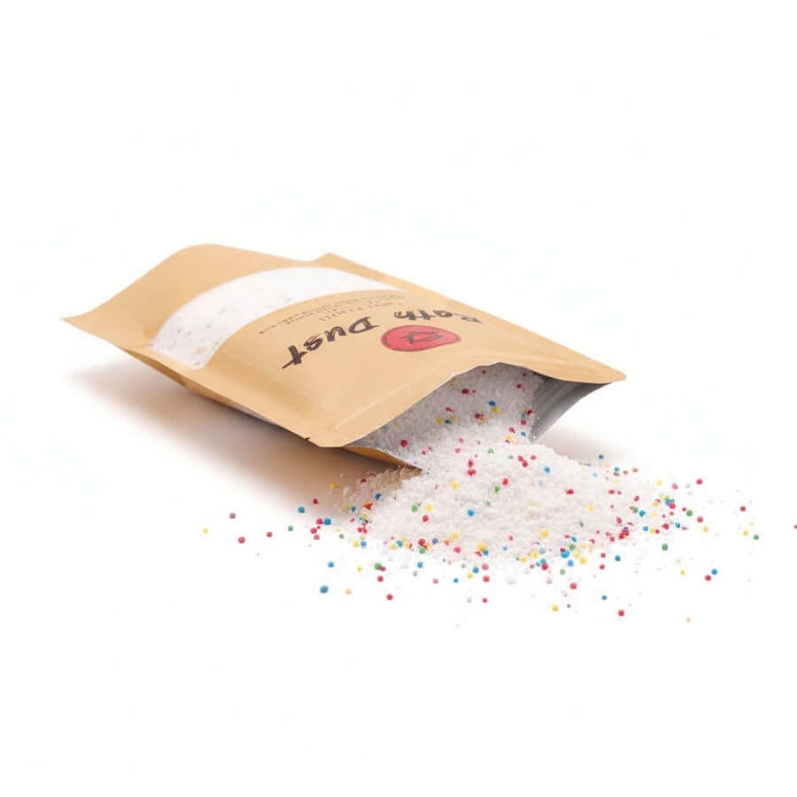 SPOSÓB UŻYCIA: Najpierw należy napełnić wannę ciepłą wodą. Następnie wsypuje się wybraną ilość pudru bezpośrednio pod bieżący strumień. Produkt zacznie natychmiast musować i uwalniać zapach Tutti Frutti. Należy pamiętać, że waga opakowania wynosi 190 g. Ponieważ produkt powstaje ręcznie, jego konsystencja oraz kolor mogą się nieznacznie różnić.
