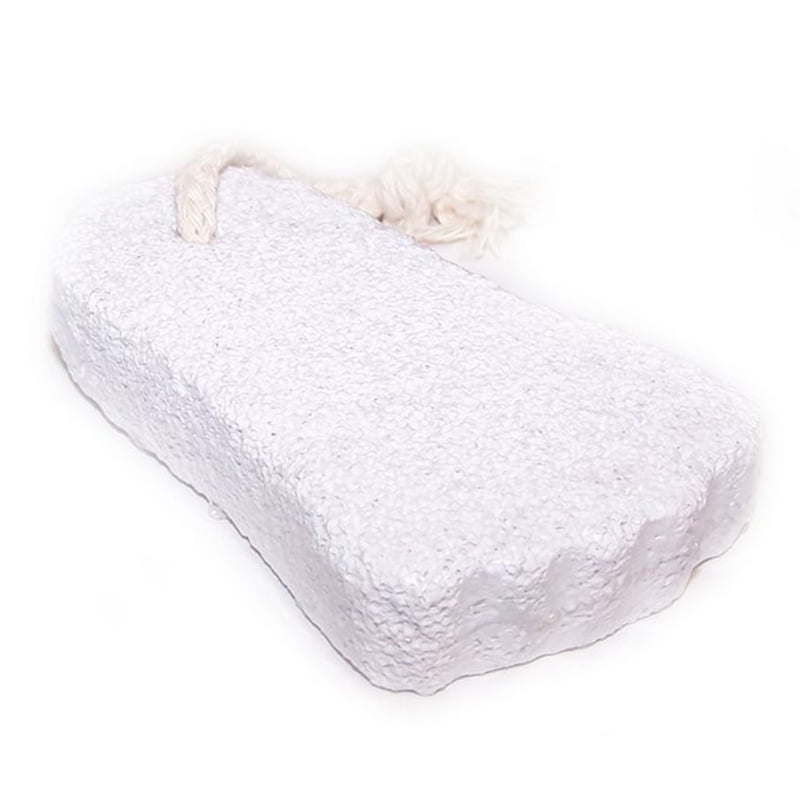Pumeks - Biała Stopa. Wymiary 10 x 7 cm. Pumeks to niezastąpiony, naturalny sposób na skuteczne złuszczanie i wygładzanie skóry ciała, dłoni oraz stóp. Ten lekki kamień, znakomicie leżący w dłoni i pokryty maleńkimi porami, doskonale usuwa martwy naskórek, pomaga szczególnie przy szorstkiej skórze pięt, pozostawiając ją miękką oraz gładką.Pumeks - Biała Stopa