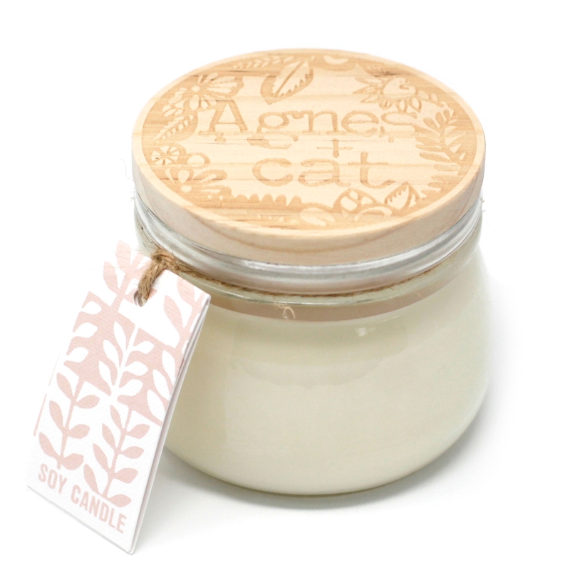 7 wspaniałych zapachów wyłącznie wysokiej jakości. Świeca sojowa w słoiku Agnes&Cat jest przyjazna dla wegan,