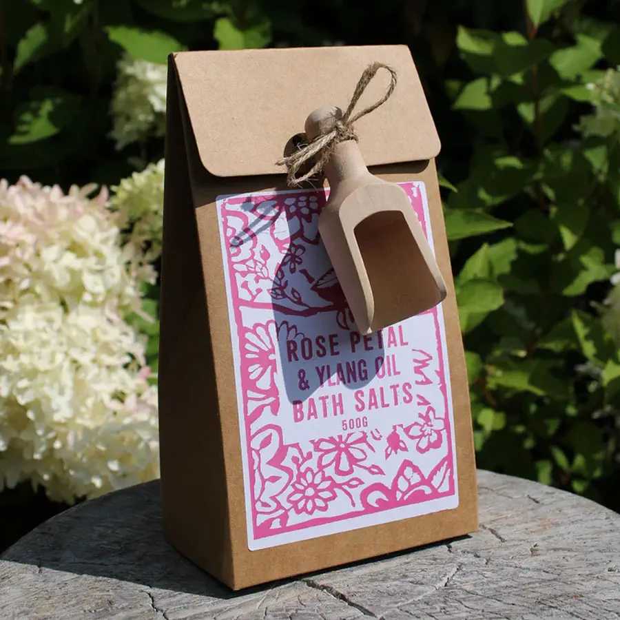 - Sól do kąpieli nie zawiera sztucznych dodatków i jest przyjazny weganom. Stosowane są wyłącznie naturalne składniki pakowane w eleganckie pudełka z drewnianą miarką.