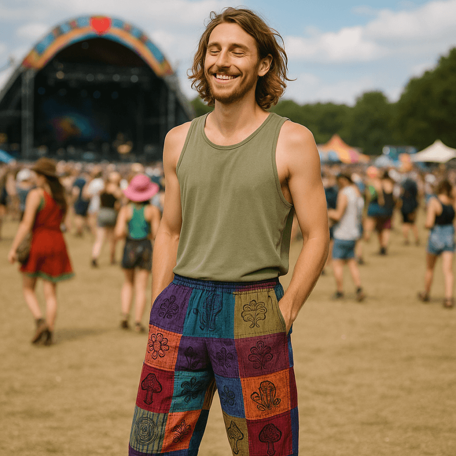 - Ręczne wykonanie i autentyczność. Każda para spodni została uszyta w Nepalu z miękkiej, przyjemnej w dotyku mieszanki bawełny i poliestru. Patchworkowe łączenie tkanin oraz tradycyjne nadruki blokowe sprawiają, że nie znajdziesz dwóch identycznych egzemplarzy – każdy model jest jedyny w swoim rodzaju, co podkreśla jego unikatowy charakter.