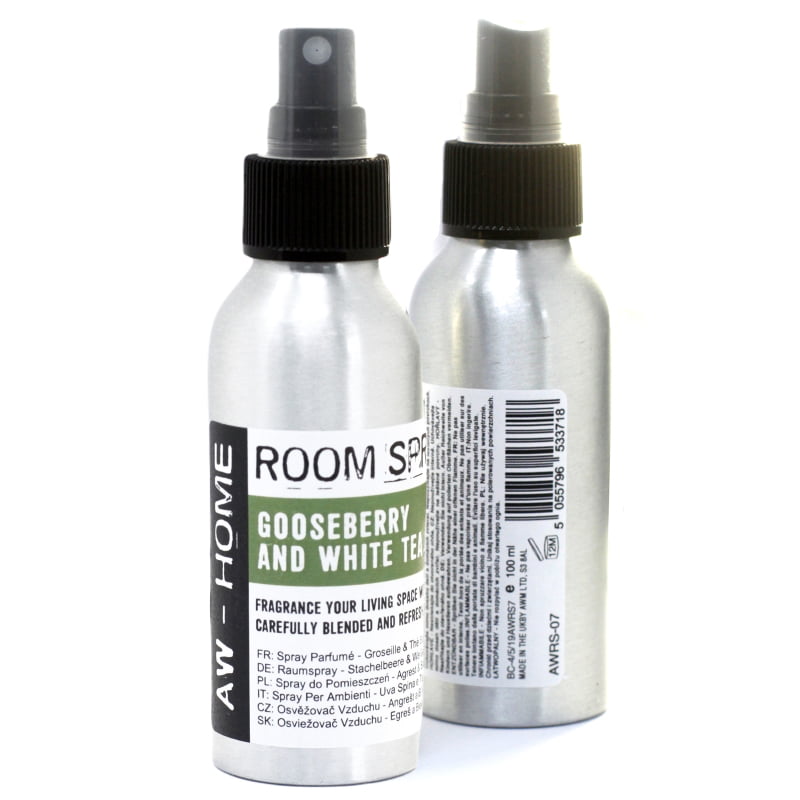 Spray do pokoju - Agrest i Biała Herbata. Pojemność 100 ml. Spray do pomieszczeń o zapachu agrestu i białej herbaty, którym za jednym naciśnięciem wypełnisz przestrzeń pięknym aromatem. Dzięki natychmiastowemu działaniu możesz cieszyć się wspaniałym zapachem od w momentu, gdy tego potrzebujesz. Intensywnie pachnący i