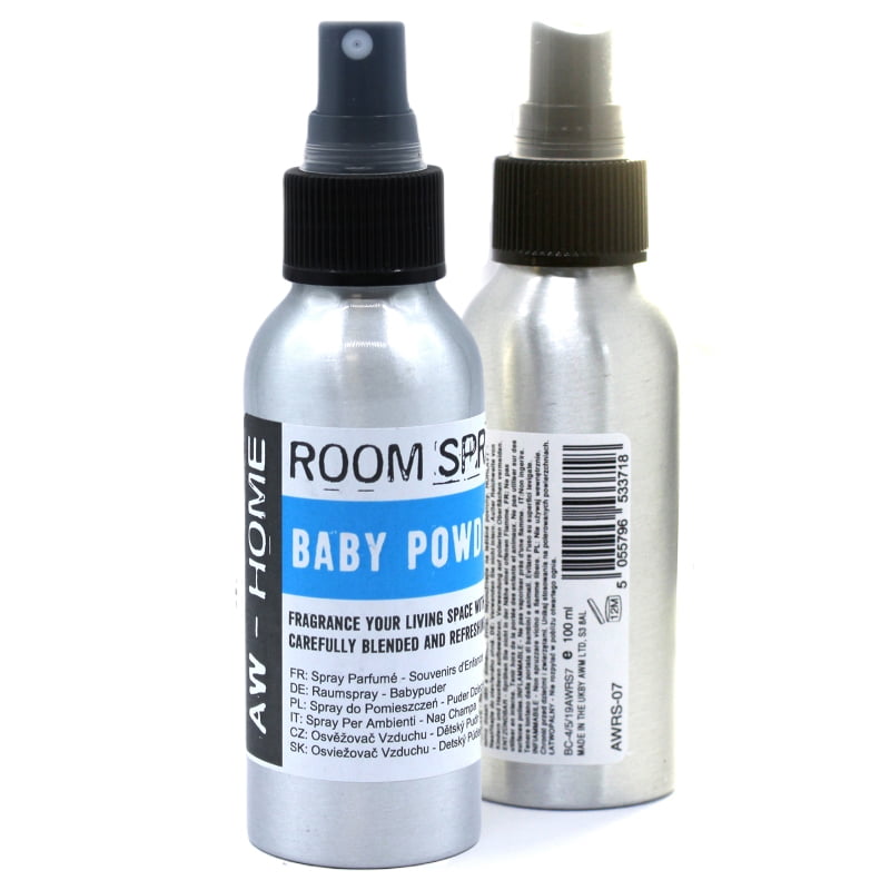 Spray do pokoju - Dziecięcy puder. Pojemność 100 ml. Spray do pomieszczeń o lekko słodkawym i delikatnym dziecięcego pudru. Jego aromat od razu przywołuje na myśl dziecięcy okres utożsamiany z