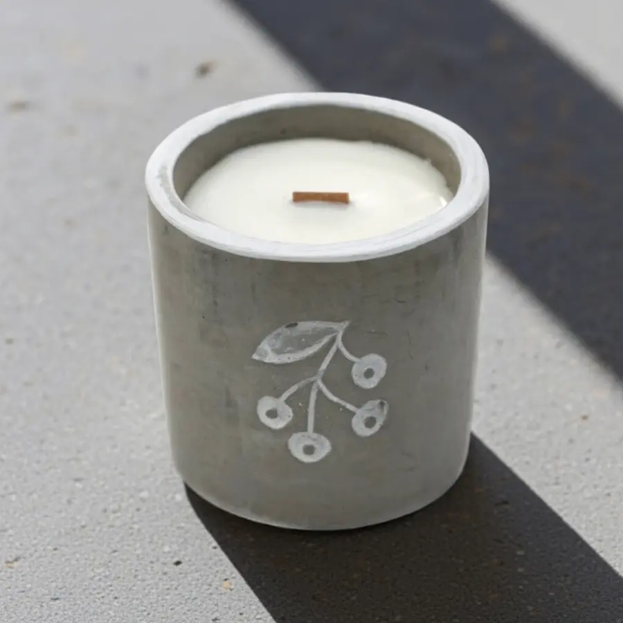 Materiał: Wosk sojowy, betonowa doniczka, drewniany knot