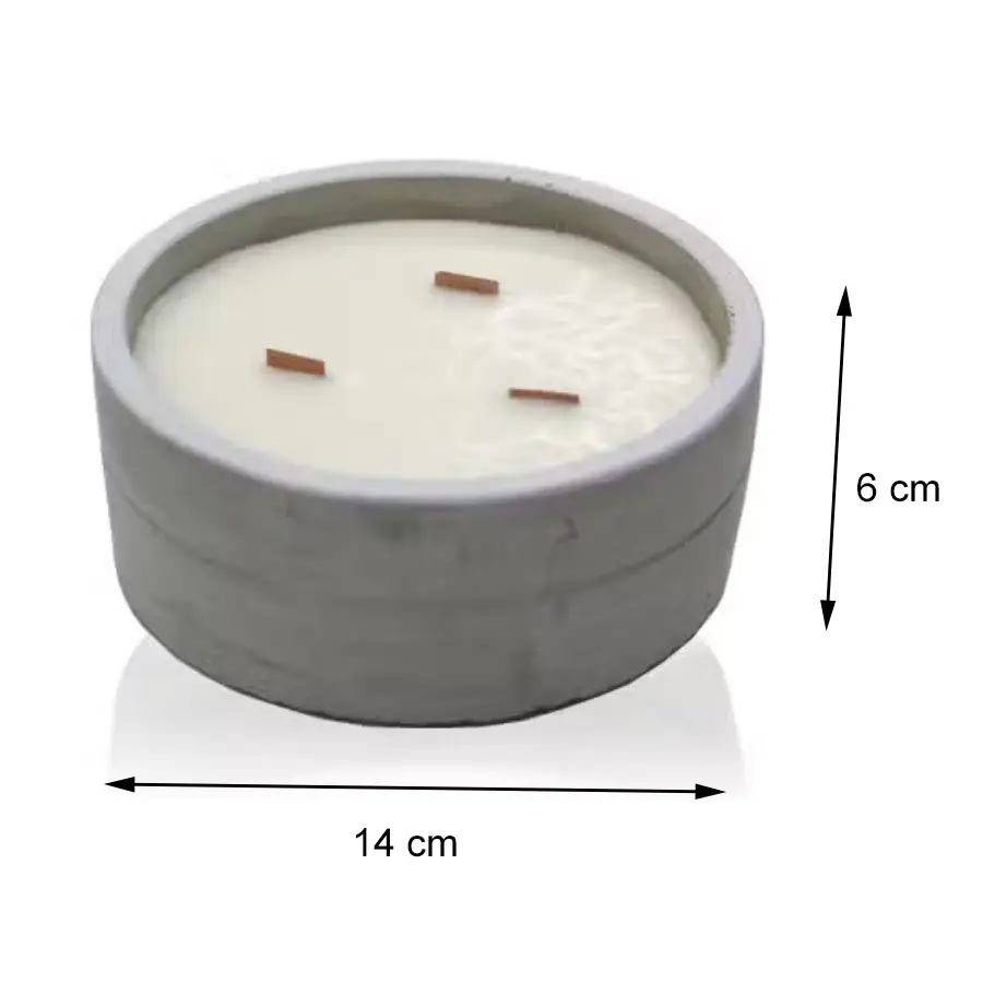 Materiał: Wosk sojowy, betonowa doniczka, drewniany knotWymiary: 6 x 14 cm