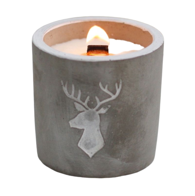 w drewniany knot, pali się równomiernie, a subtelne trzaskanie knota buduje kameralny nastrój. Betonowy pojemnik podkreśla prostotę i nowoczesny styl, a po wypaleniu świecy dodatkowo może posłużyć jako