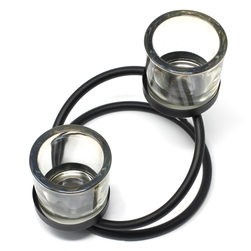 Świecznik metalowy - Dwa kółka 2 świece. Elegancki świecznik o nowoczesnym wzorze to