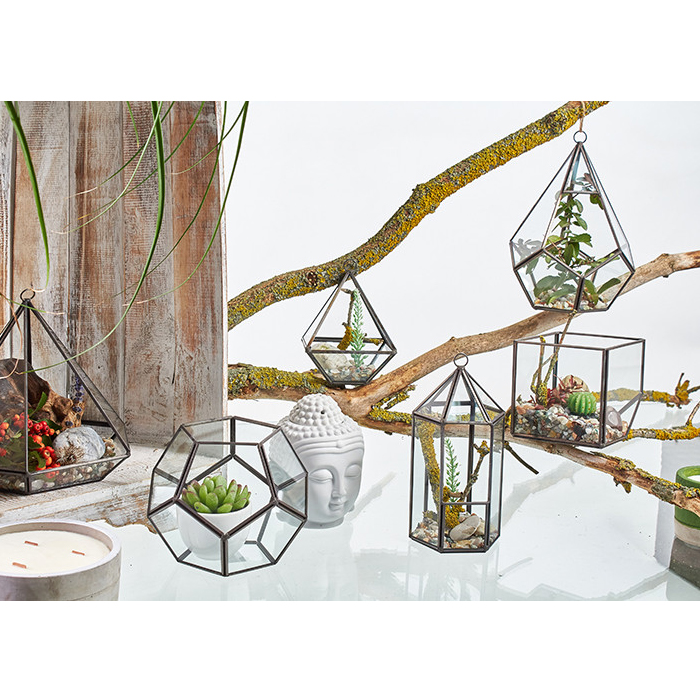 Szklane terrarium geometryczne zapewnia piękny i łatwy w utrzymaniu sposób na wprowadzenie do wnętrz odrobiny natury. Można je umieścić na blatach, półkach lub innych dobrze wyeksponowanych miejscach. Wystarczy dobrać rośliny odpowiednie do warunków otoczenia i zapewnić im okazjonalną pielęgnację, aby terrarium długo pozostawało efektowną ozdobą.