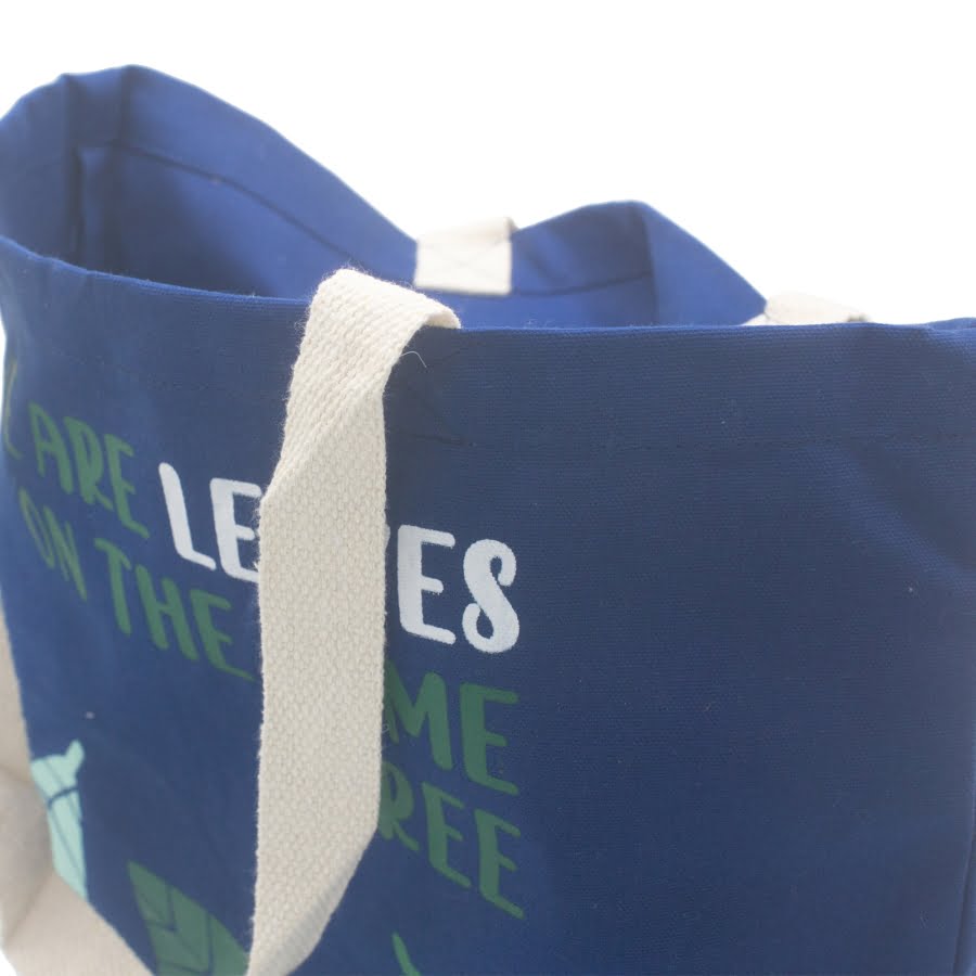 „We are leaves on the same tree” nadaje torbie wyjątkowego charakteru i podkreśla jej ekologiczny styl. Projekt wyróżniają proste, subtelne ilustracje liści w różnych odcieniach zieleni, które nie tylko