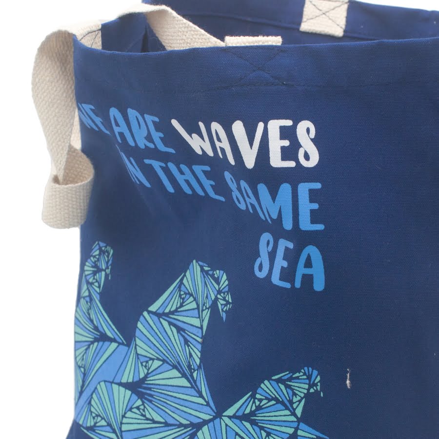 „We are waves in the same sea” nadaje torbie wyjątkowego charakteru i podkreśla jej