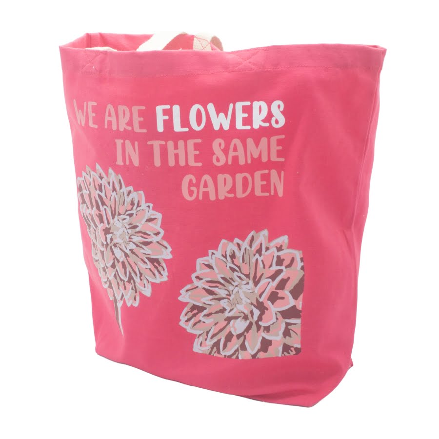 „We are flowers in the same garden” nadaje torbie wyjątkowego charakteru i podkreśla jej ekologiczny styl. Dopełnieniem całości są